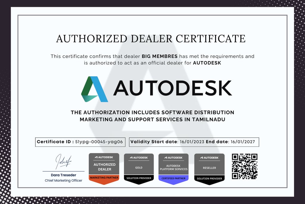 With over 6 years of experience, Big Membres is a trusted Autodesk Gold Partner supplying top colleges and companies in Tamil Nadu.